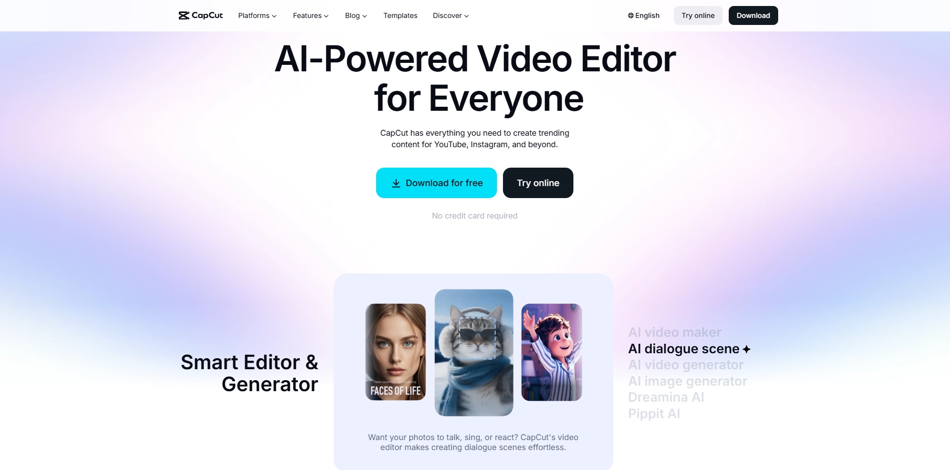 CapCut is a versatile AI creative suite available on web browsers, desktop, and mobile, serving as the ultimate shortcut for viral content creation. Beyond traditional editing, its AI Lab features a Script to Video tool that generates complete videos with stock footage and voiceovers from a simple text prompt. For creators looking to scale their brand, the platform offers AI Characters that lip-sync to scripts and an AI Video Translator for reaching global audiences. It also includes advanced tools like AI Movement for cinematic effects, AutoCut for beat-synced editing, and Long Video to Shorts for repurposing content instantly. This suite is essential for social media influencers, solopreneurs, and marketers who need high-quality, trendy video assets without the steep learning curve of professional software. By combining cloud-based flexibility with powerful generative models, it makes high-end storytelling accessible to anyone on any device. Below are screenshots of the website version of CapCut